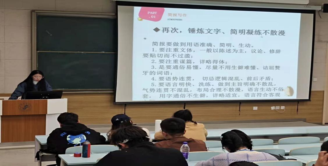 培训首先就学院的公众号运营提出了建议,随后就简报等其它各类公文的写作进行了详细指导。