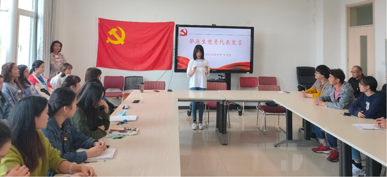 2016级经济学班许显红同学作为毕业生党员代表发言,她认为作为一名共产党员要不断地完善自己,武装自己的头脑,无论毕业与否,都要铭记自己的党员身份,保持终身学习的精神,同时,她表达了对学校及学院教育、培养的感激之情。其他毕业生党员也纷纷发表毕业感言,交流离校感想。