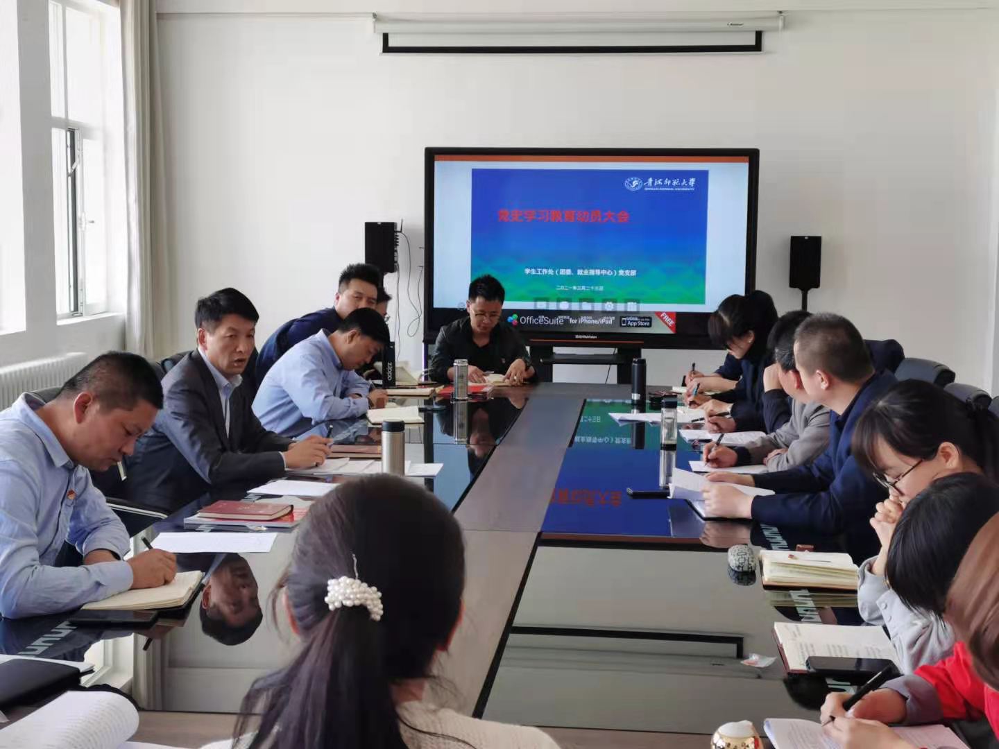 为深入学习贯彻习近平新时代中国特色社会主义思想、习近平总书记系列重要讲话精神,认真落实中央、省、及学校党委关于开展党史学习教育的部署要求,3月23日下午,学工处(团委、就业指导中心)党支部组织召开了党史学习教育动员部署会议。会议由支部书记周晶主持,支部全体党员、预备党员参加会议。