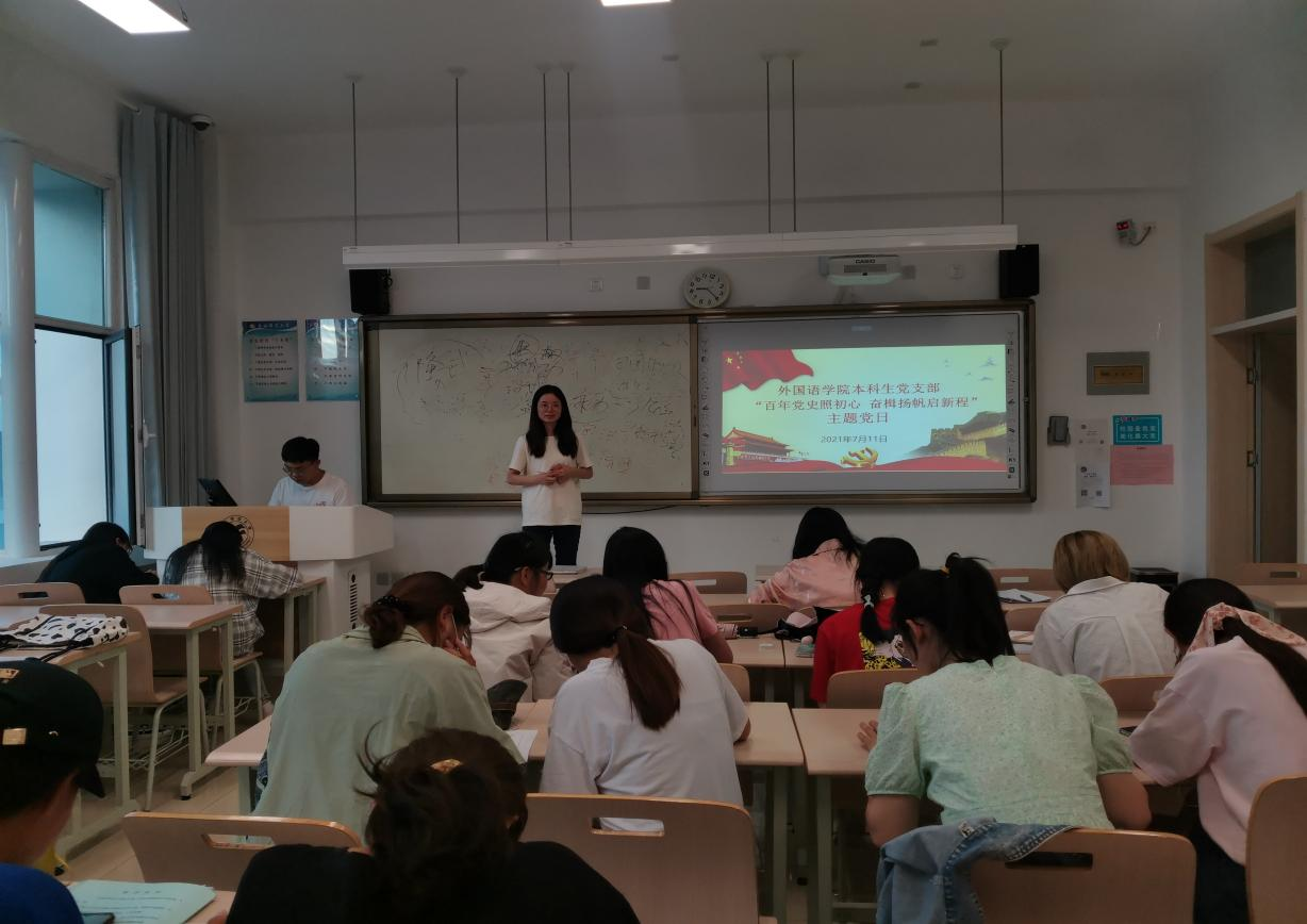 为了教育引导广大党员学好用好党的创新理论,赓续红色血脉,发扬光荣传统,发挥先锋模范作用,7月11日下午,外国语学院本科生党支部召开主题党日活动,支部书记主持活动,支部全体党员参加。