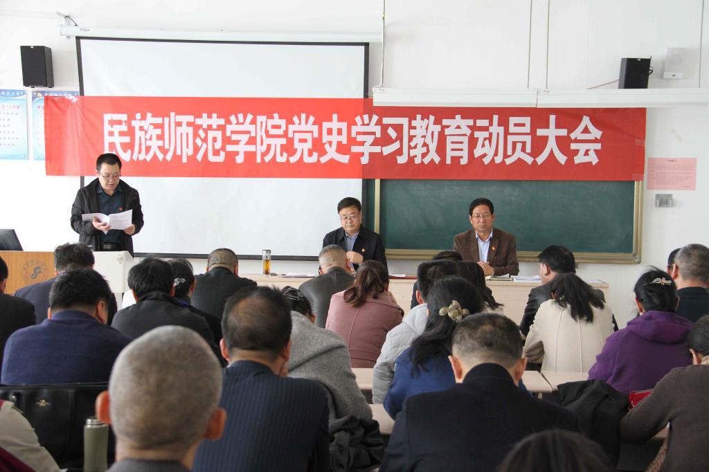 3月17日下午,民族师范学院党委召开党史学习教育动员大会,深入贯彻落实学校党史学习教育动员会议精神,动员部署学院党史学习教育工作。学院党委委员、各党支部委员及全体党员教师共46人参加了会议。会议由院党委副书记、副院长吉太加主持。