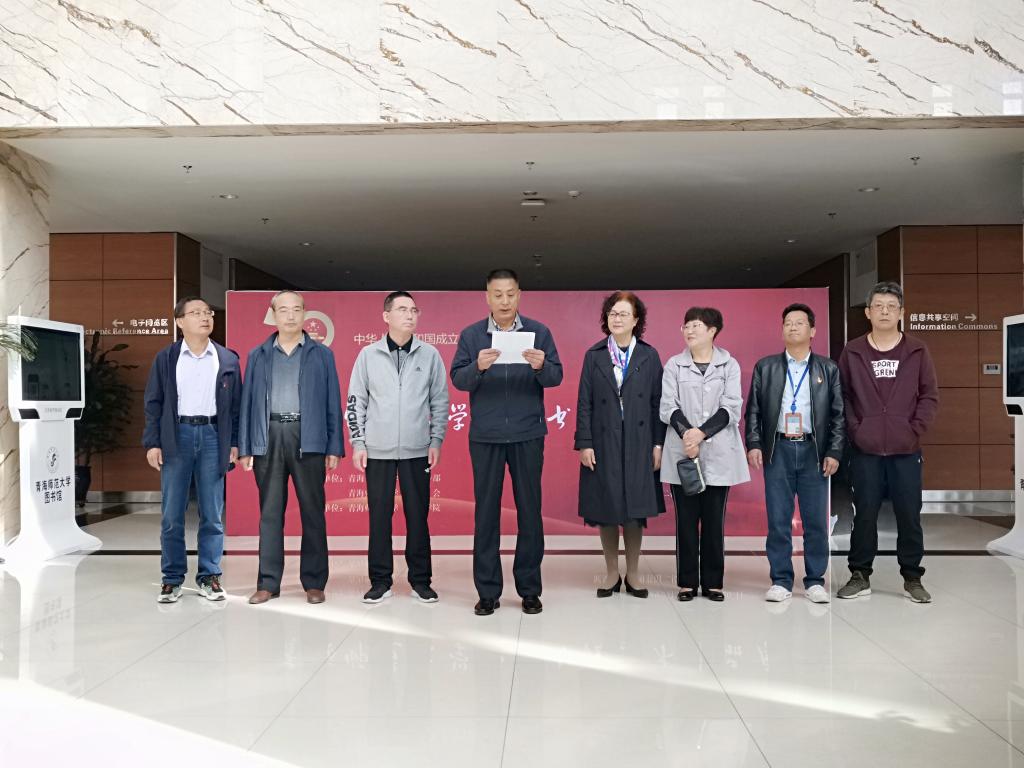 9月27日上午,由校党委宣传部、工会、美术学院联合举办的“庆祝中华人民共和国成立七十周年”师生书法美术作品展正式展出,美术学院副院长都世庭主持开幕式,校行政、各学院相关负责人参加开幕式。