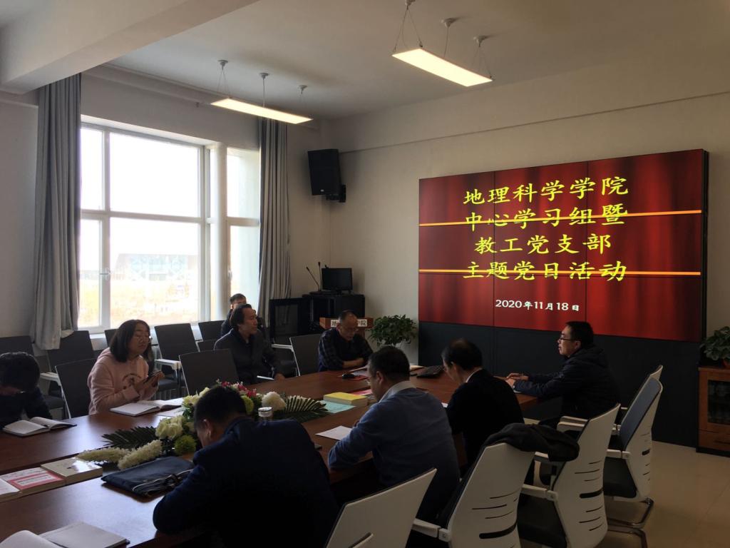 11月18日,地理科学学院党总支中心组学习暨教师党支部主题党日活动在学院会议室举行。活动由党总支中心组成员吕晨青同志主持,学院副院长毛旭锋及全体教师党员参加。