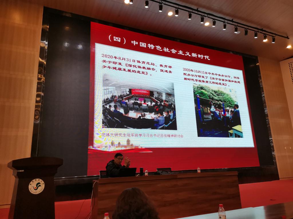 讲座中,雷欣教授围绕中国体育百年发展历程、中国体育取得的辉煌成绩以及中国体育取得成绩的经验等三个方面展开详细解读。 他指出,中国体育的发展与中国共产党的发展息息相关,中国体育由弱变强,人民健康水平不断提高,竞技体育水平跻身世界第一集团,都是在中国共产党的正确领导、国家富强、人民富裕的基础上取得的。他强调,新的一百年征程即将开始,“把体育事业做成实现中华民族伟大复兴的标志性事业”是体育人的艰巨任务,体育人要坚持中国共产党的领导,按照习近平总书记的指示精神,力争完成这一艰巨而光荣的任务,向党和人民交出满意的答卷。