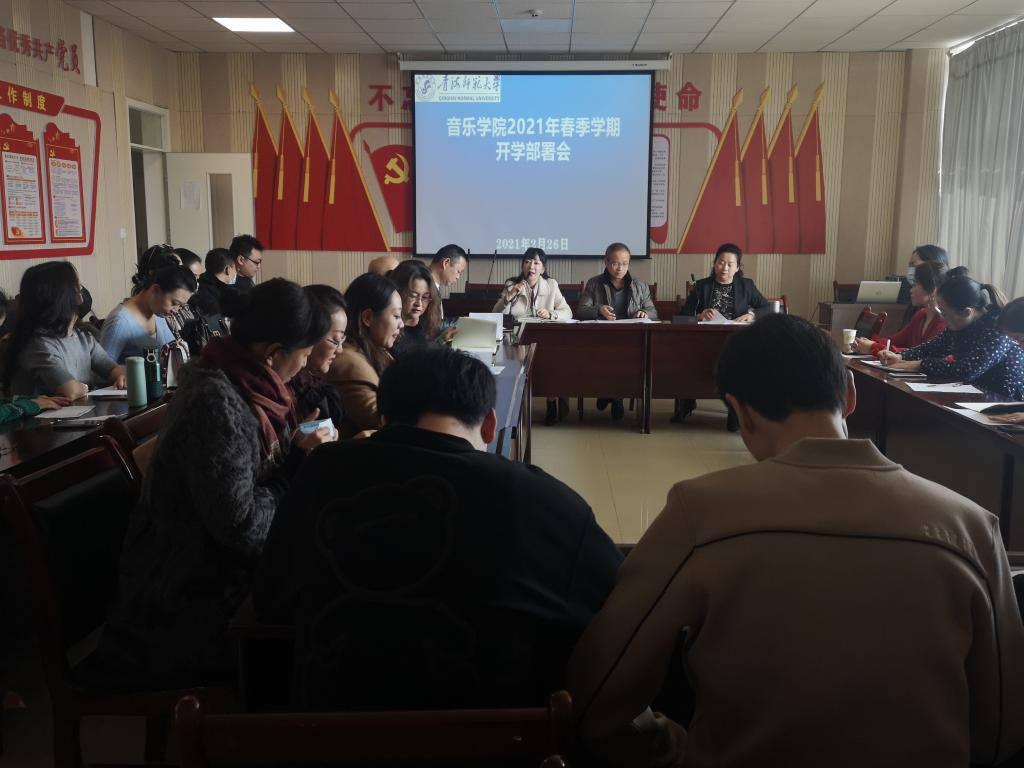 2月26日下午,音乐学院召开2021年春季学期开学工作部署会议,全体教职工参加了会议。会议由院党总支副书记宋睿青主持。