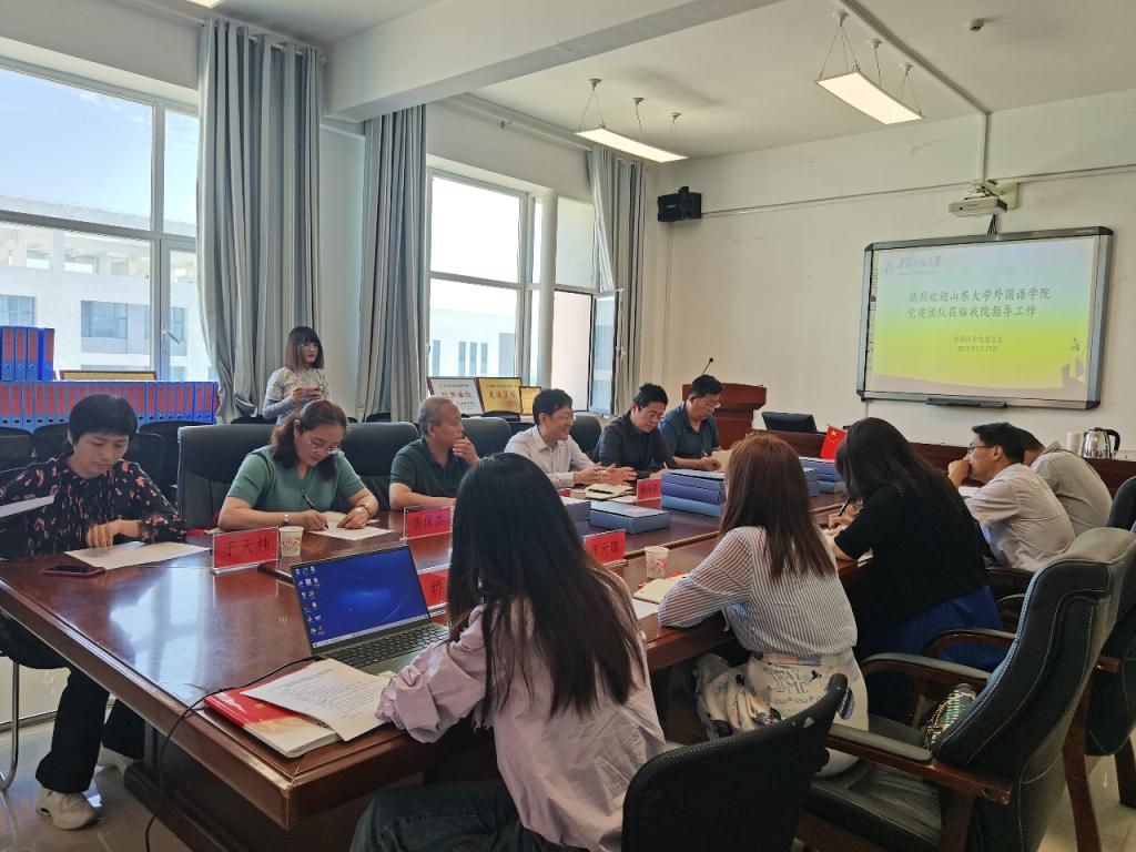 李增垠从专业建设、学科建设、研究生培养等几个方面介绍了外国语学院科研情况,提出希望在本科生赴山东大学交流的基础上,选派优秀研究生赴山大交流学习,开展更多层面的合作交流。教师党支部书记妥洪岩介绍了样板党支部建设的情况,突出了学院教教师党员在党建项目申报、课程思政建设、创新创业项目、一级学科申报等各项工作中充分发挥先锋模范作用。
