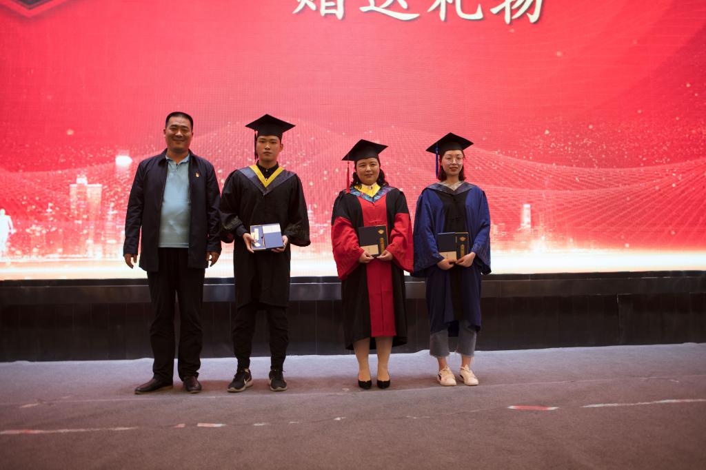 随后进行了学位授予仪式,由博士生导师杜秀娟、黄鹤鸣、李瑞三位教授分别为毕业生拨穗正冠,颁发证书。仪式后,在校生代表也为学长学姐们送上祝福,经典的旋律、朴实的话语、诚挚的情谊,深深地感动着在场的每一位师生。