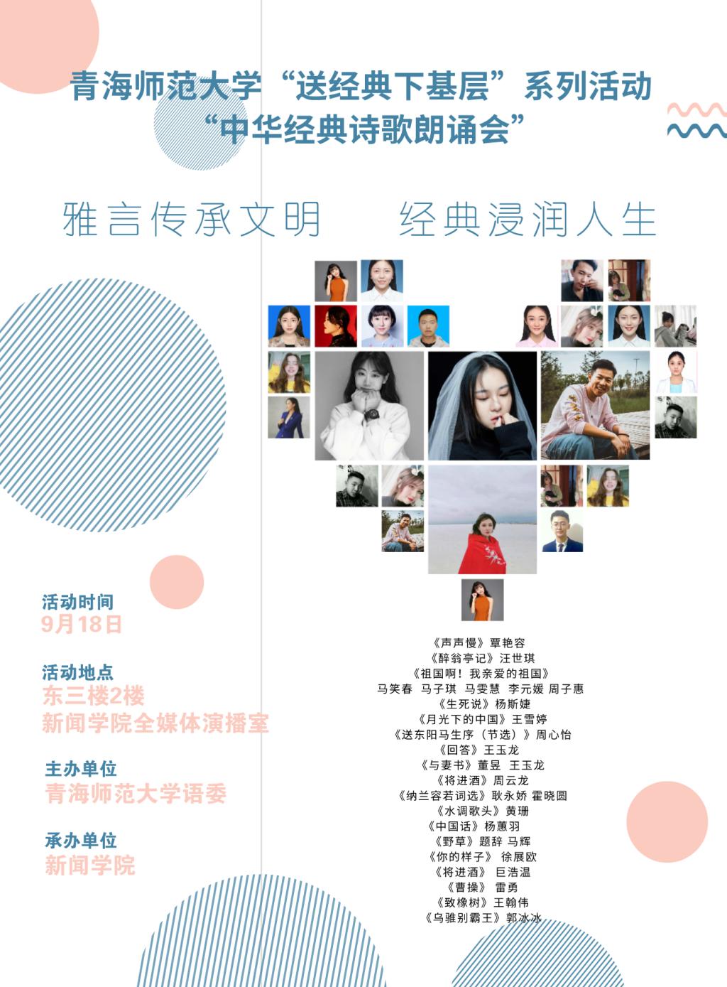 此次活动与之前7月在365官网展开的由教育部、国家语委统一安排,青海省教育厅、青海省语言文字工作委员会主办,bat365在线平台登录语委承办的第二届中华经典诵写讲大赛“诵读中国”全省经典诵读大赛相承接,为该活动系列活动之一。全省经典诵读大赛旨在贯彻落实国家通用语言文字法,彰显中华语言文化魅力,引导社会大众特别是青少年亲近中华经典,提升国家通用语言文字运用能力,增强爱国精神,为中华民族伟大复兴的中国梦提供精神动力。