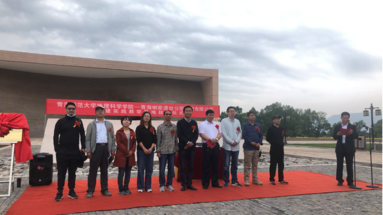 仪式上,杨登兴与崔文和分别代表bat365在线平台登录地理科学学院与青海喇家国家遗址公园管理有限公司签署了实践教学基地协议书,并为实践教学基地揭牌。
