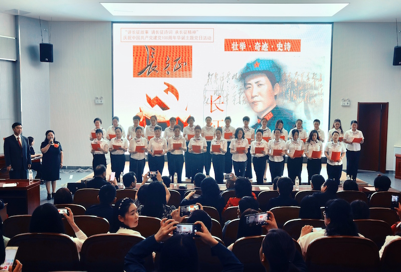 在中国共产党建党100周年来临之际,为深情回顾党的奋斗历史,热情讴歌党的光辉业绩,继承和发扬党的光荣传统和优良作风,更为党的百年华诞献礼,法学与社会学学院与青海省女企业家协会、青海省家庭服务业协会、青海省妇女手工制品协会、西宁市律师协会、西宁市律师行业党校、西宁市律师学院于6月29日共同举办“‘讲长征故事 诵长征诗词 承长征精神’建党100周年庆祝活动”。