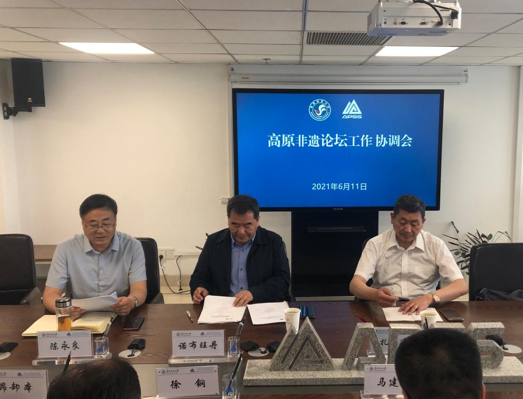 6月11日,高原非遗论坛工作协调会在高科院召开。bat365在线平台登录原副校长扎布,中国社会科学院研究员、高科院非遗团队带头人诺布旺丹教授出席会议,党校办、宣传部、社科处、保卫处、公共资源管理中心、民族师范学院、美术学院、高科院办公室、明德物业公司等相关负责人和部分教师代表参加会议。民族师范学院院长陈永良主持会议。