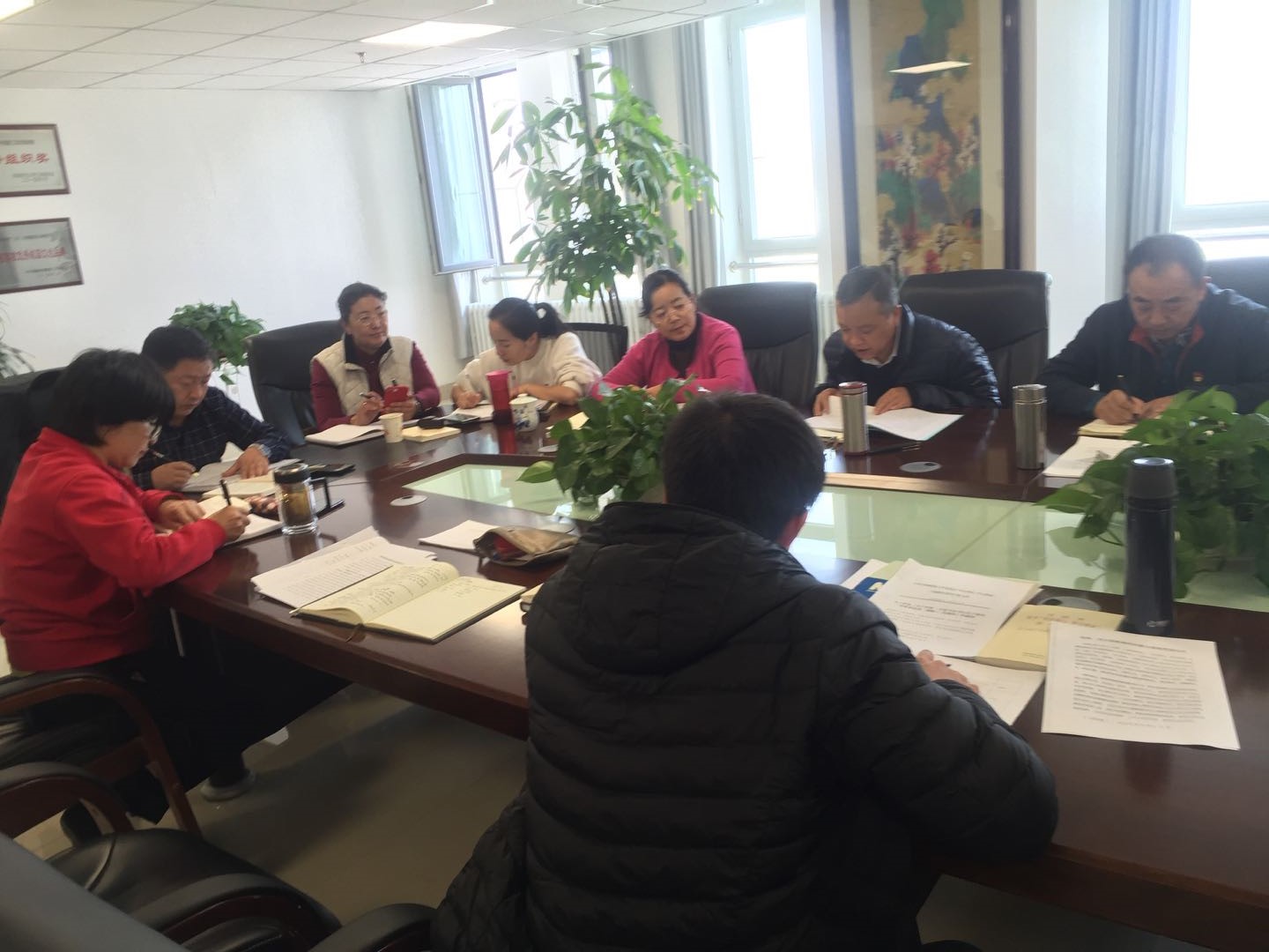11月20日下午,图书馆党支部召开“不忘初心、牢记使命”第八次集中学习暨十九届四中全会精神专题学习会,全体党员参加学习,会议由支部书记田援青主持。