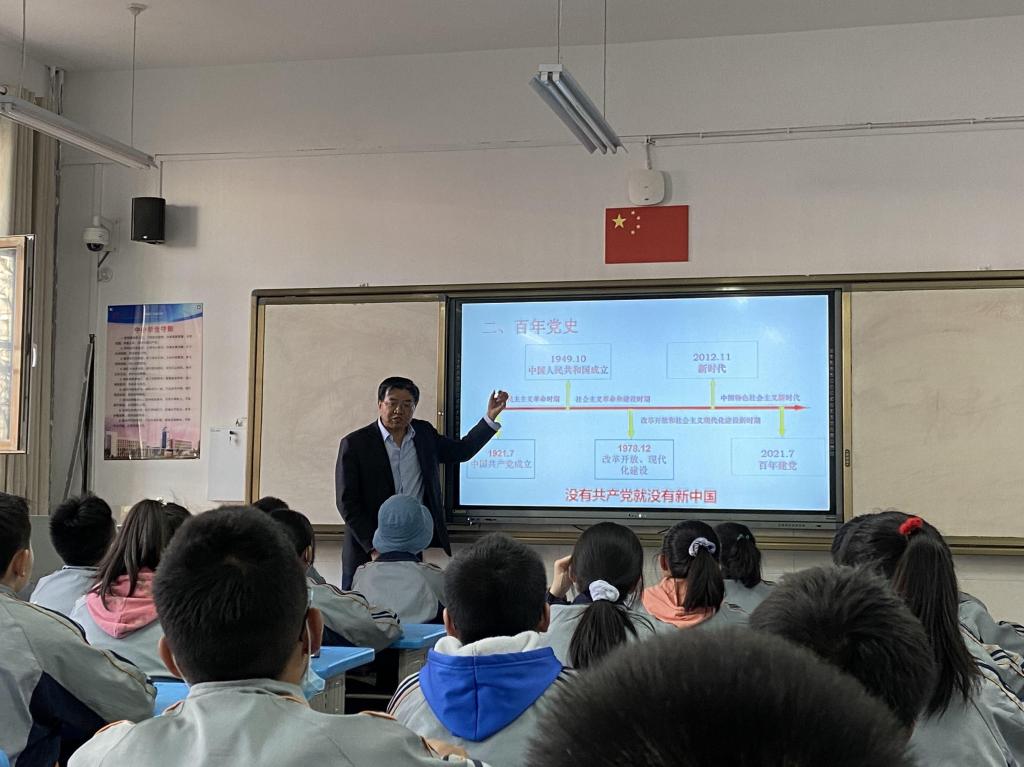 3月29日周一班会时间,在党总支书记冯建新,总支委员叶守爱、徐靖峡等的带领下有37名党员干部深入班级宣讲百年党史。各支部宣讲老师课前精心备课,制作了精美ppt课件,用图片文字、音视屏向学生们讲述了百年党史。