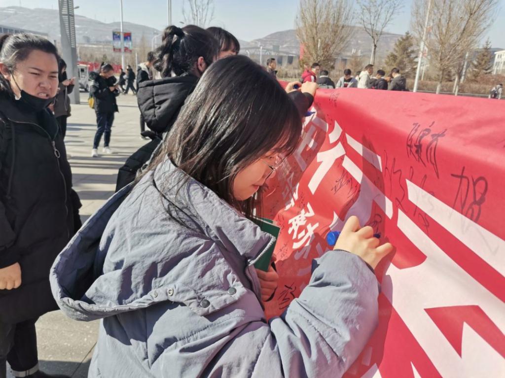 中午,禁烟宣传员们在大众餐厅门前拉起横幅,展示禁烟宣传海报,向过往的师生讲解吸烟的危害,并呼吁他们加入我们的禁烟活动。广大师生响应我们的呼吁在横幅上踊跃签字留言。下午,禁烟宣传员们化身禁烟斗士,围绕男生公寓到大学生活动中心门口路段捡烟头。晚自习期间,禁烟宣传员代表进入各班播放禁烟动画,详细讲解吸烟的危害,最后呼吁吸烟的同学戒除吸烟陋习,文明先行,争做戒烟先锋。