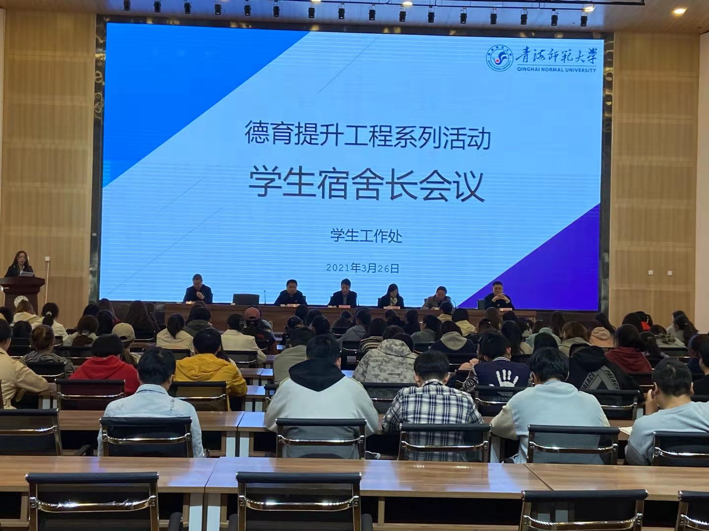 学生工作处结合学习党史教育活动,以推进德育提升工程深入实施,3月26日下午,组织召开了推进德育提升工程系列活动之宿舍长大会。学生工作处负责人、新闻学院、经管学院主管学生工作领导、辅导员、学工处相关工作人员及宿舍长代表等200余名师生参加了会议。会议由学生工作处副处长陶发华主持。