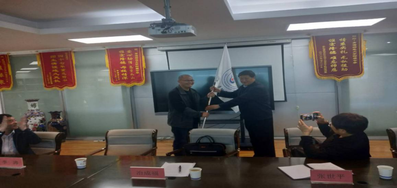 最后,冶成福为支教团教师代表王振群老师授旗。