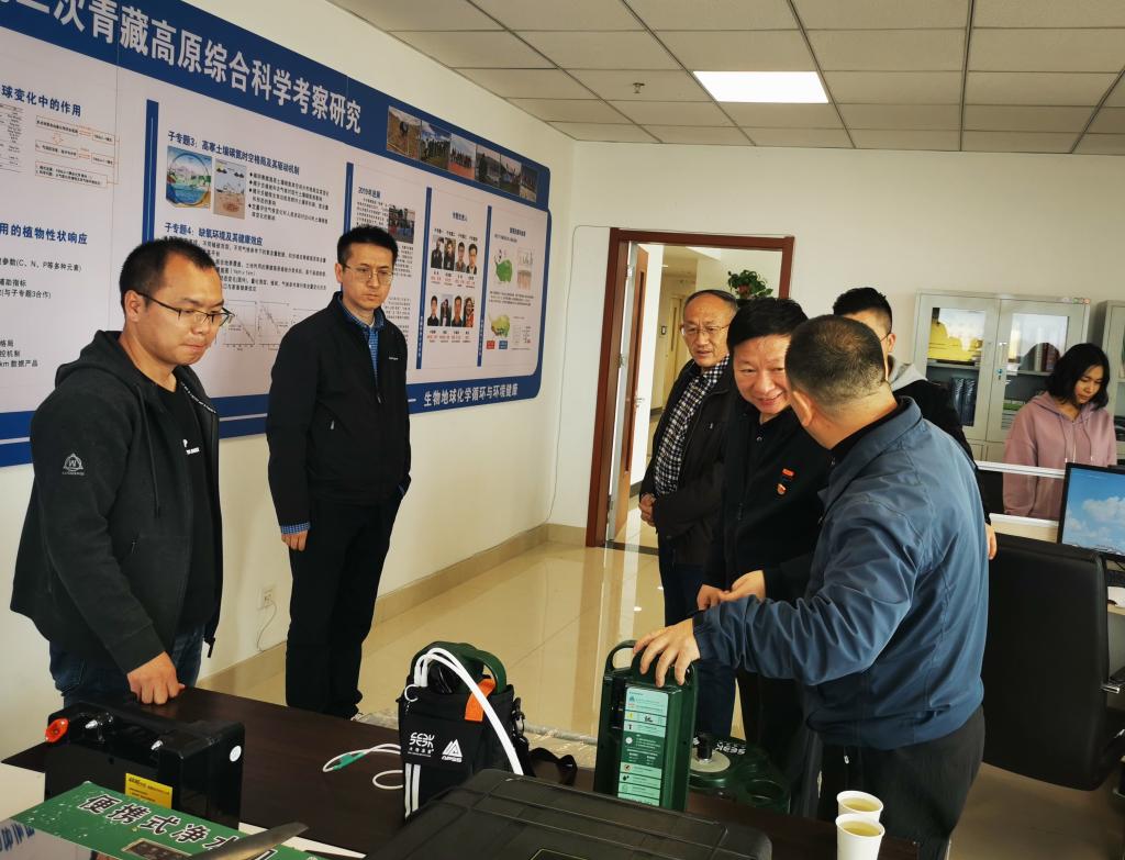 最后,杨广智一行参观了第二次青藏高原科学考察青海基地办公室,青藏科考生物地球化学专题组联络员、高科院科研团队成员马永贵教授介绍了该项目专题的基本情况和已取得研究成果。