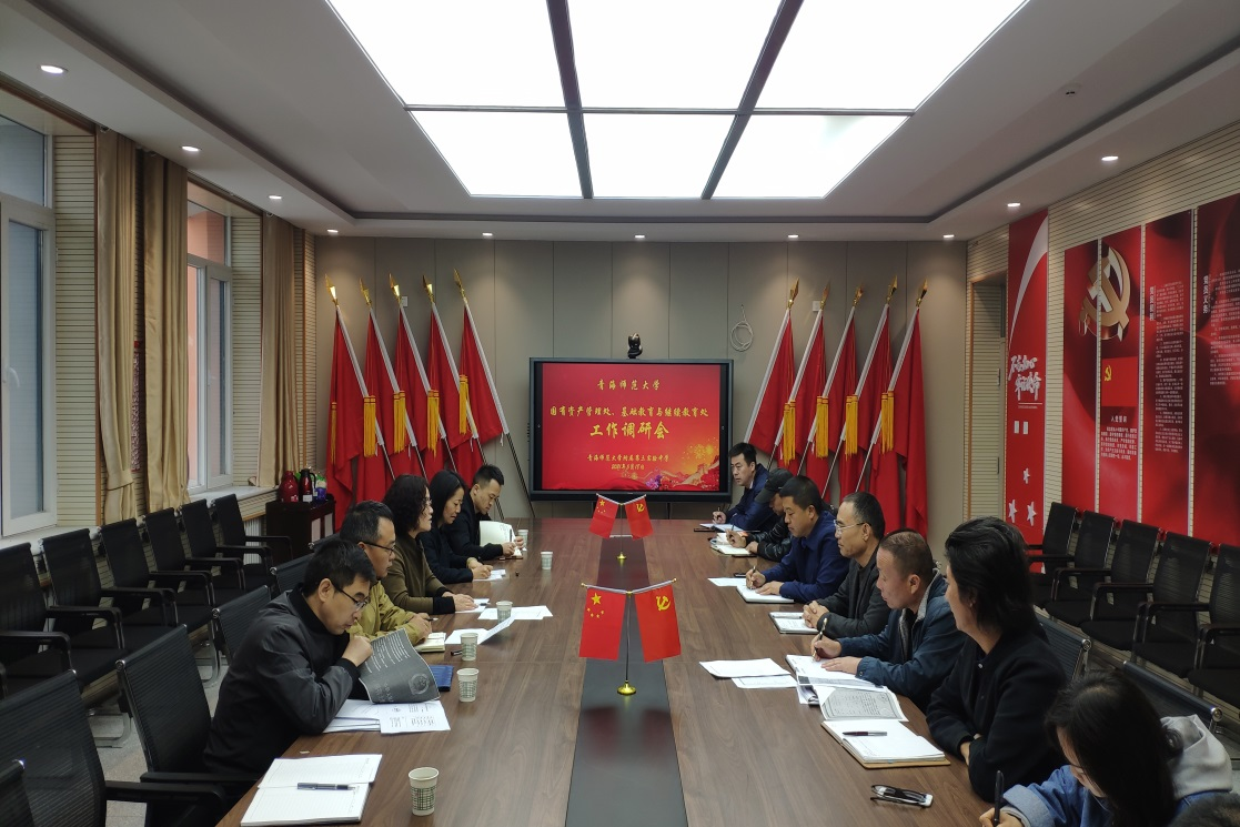 调研会上,学校后勤管理中心樊杰涛主任和财务室完玛加老师分别就学校的土地使用情况、固定资产工作及项目招标工作进了汇报。