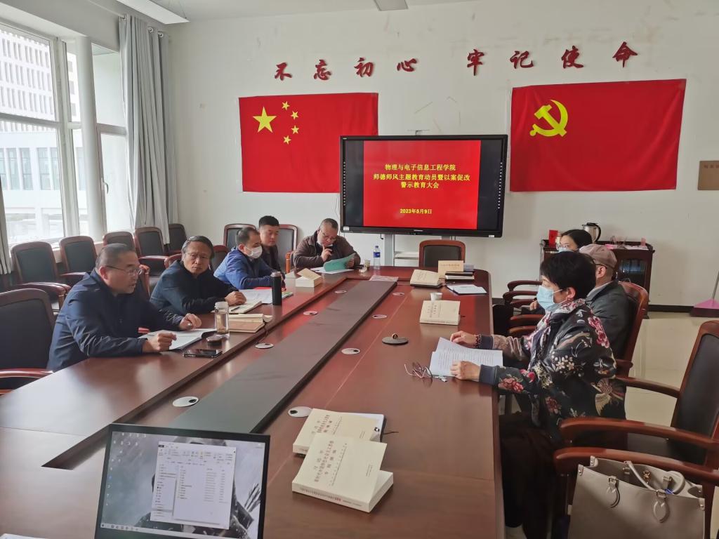 5月9日下午,物理与电子信息工程学院召开争做“四有”好老师和新时代“大先生”师德师风主题教育暨以案促改专项教育整治动员部署会,会议由院长黄湘宁主持,党总支书记王敬佩作动员讲话,学院全体教职工参加。
