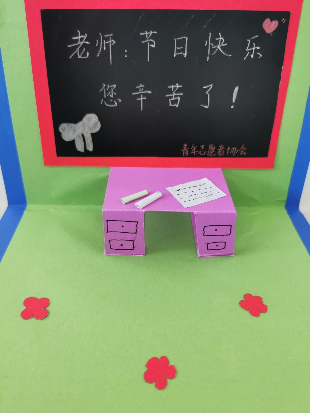 在这特殊的日子里,同学们将亲手制作了五彩缤纷的贺卡送给老师,这是最好的节日祝福。每一份贺卡都表达了对老师的祝福与爱戴,讲台上,书桌旁,寒来暑往,春夏秋冬,都有你留下的背影。