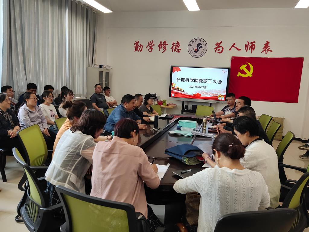 6月23日下午,计算机学院召开全院教职工大会。会议由院党总支书记曹玉林主持,全体教职员工参加,主要传达学校近期下发的重要会议及文件精神,安排部署近期重点工作。