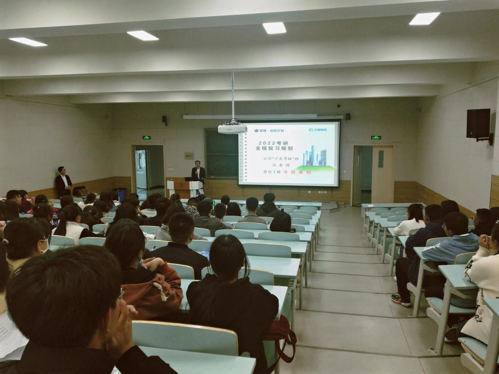 讲座根据最近几年的报考、录取数据,分析了考研的形势,围绕解读招生简章、专业院校选择、各科复习方法、考研流程、考研调剂等几个方面对学生进行了考研规划指导。