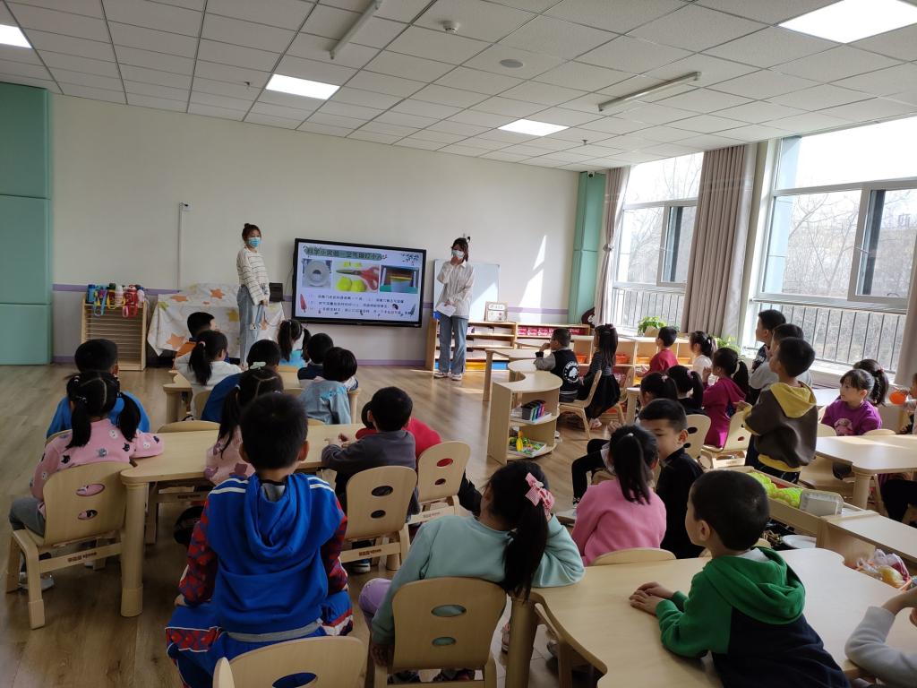 本次活动围绕中国传统文化二十四节气之“惊蛰”展开。活动分为三部分,一是讲解“惊蛰”的起源,学习惊蛰节气手势舞,鼓励孩子们积极参与互动,引导孩子们发挥想象;二是表演情景剧《惊蛰的惊喜》,志愿者们表演生动,配合精美的道具让孩子们身临其境地了解小动物们在惊蛰节气中的变化;通过观察动物的行为特点,发现自然规律,养成爱观察的良好习惯;志愿者们给孩子们答疑解惑,呼吁孩子们爱护自然环境,加深对惊蛰的记忆;三是一起完成“打小人”游戏,孩子们8个人一组,哪个小组最先打完所有“小人”即为获胜组,增强了孩子们的动手能力和团队协作精神。