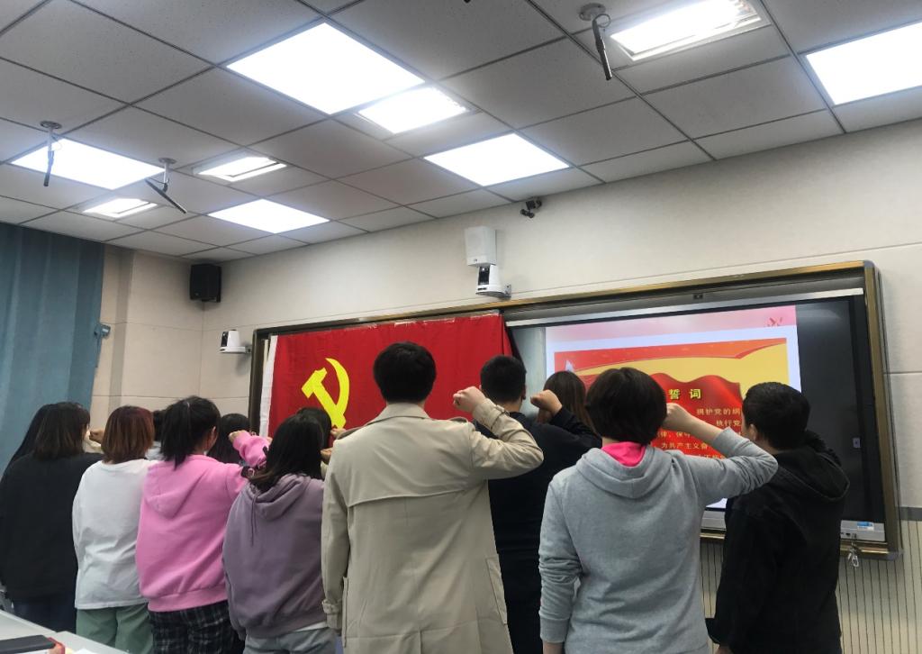会上,支部书记首先宣布参加入党宣誓的预备党员名单,在庄严的党旗下,叶嫚琳同志带领新党员进行了宣誓,新党员代表龚世卓同志发表了感想,表示要争做一名合格党员,认真学习党史,为建党100周年贡献自己的力量。随后,在团推优、党员推荐、征求群众意见、平时表现的基础上,对入党积极分子和发展对象人选进行了充分的讨论,经过正式党员无记名投票表决,会议确定了支部2021年上半年入党积极分子和发展对象名单,会议还传达了党员发展增加大一、大二比例的新要求。最后,支部对前期党史学习教育进行了总结并集体讨论规划了4-5月份的学习、活动方案,要求全体党员传承红色基因,坚定理想信念,努力学党史、悟思想、办实事、开新局,践行党员初心使命。
