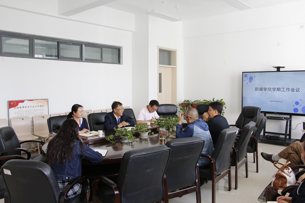 9月1日,新闻学院召开新学期工作部署会,校党委副书记、常务副校长马德明,校党委组织部副部长龙海明等莅临会议,学院党总支书记陈晓翔、常务副院长甘生统及全体教师参加会议。