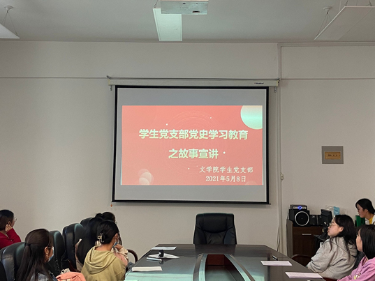5月8日晚,文学院学生党支部在学院会议室开展党史学习教育宣讲专题活动。活动由党支部书记贾国仓主持,全体学生党员、预备党员、党员发展对象、入党积极分子参加。