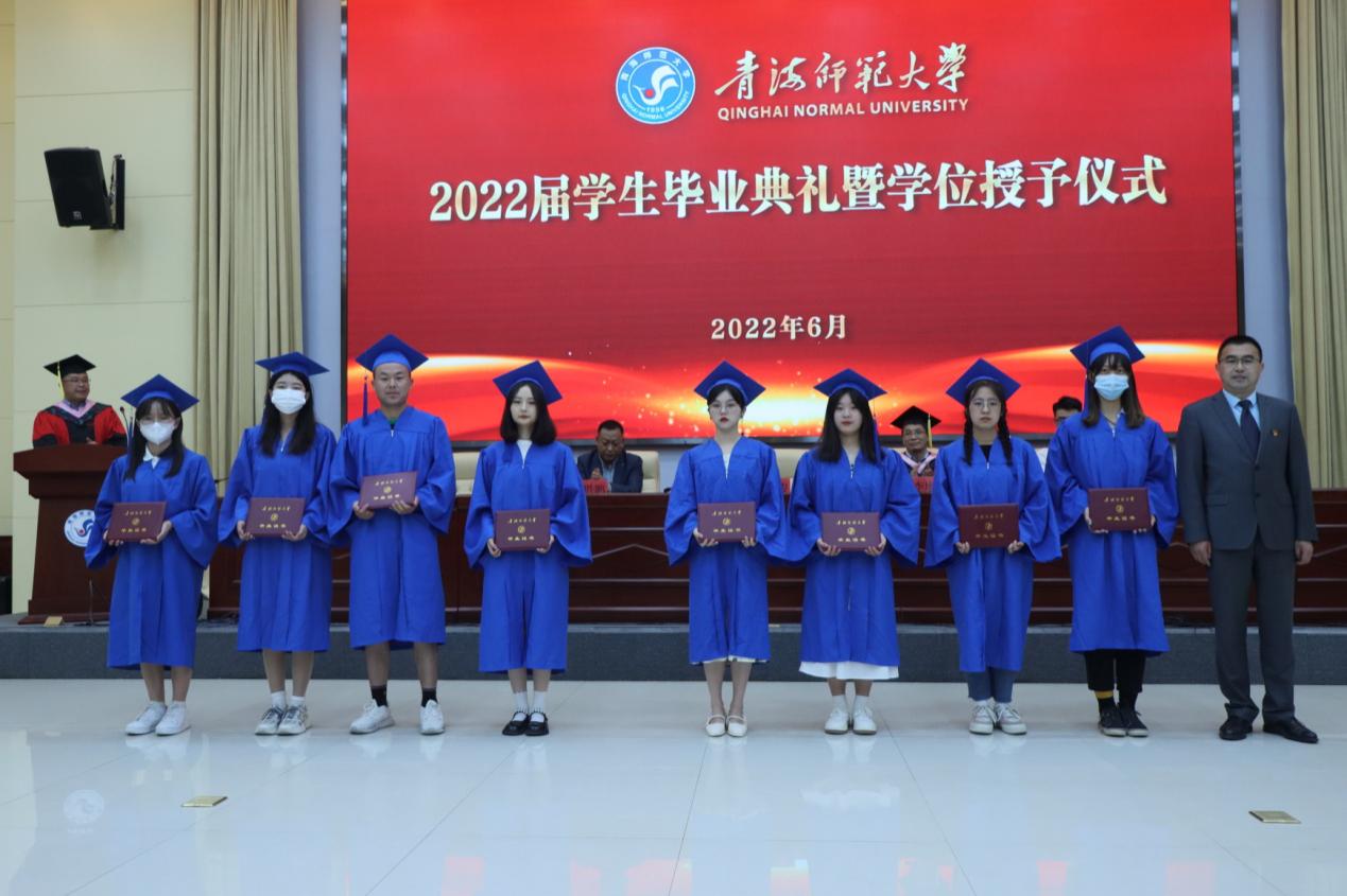 典礼在随着妥洪岩宣读《关于授予2022届研究生本科生学位的决定》,毕业生学位授予仪式正式开始。索南仁欠教授在城西校区分会场为获得学位的硕士研究生代表丰甜甜颁发学位证书并拨穗,马金芳为获得学位的硕士研究生线上拨穗,李增垠为获得学位的本科毕业生颁发毕业证书并拨穗。