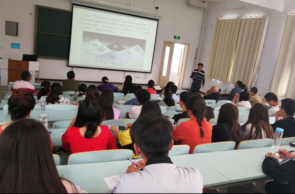 报告中,陈必清教授首先介绍了稀土元素的结构特征,及磁、光、电、催化等特性,指出稀土有现代工业“维生素”之称,是材料科学的宝藏。我国稀土储量居世界第一位并且是唯一含有所有17种稀土元素的国家,稀土资源是全球瞩目的战略资源,在尖端科技领域有非常广泛应用。
