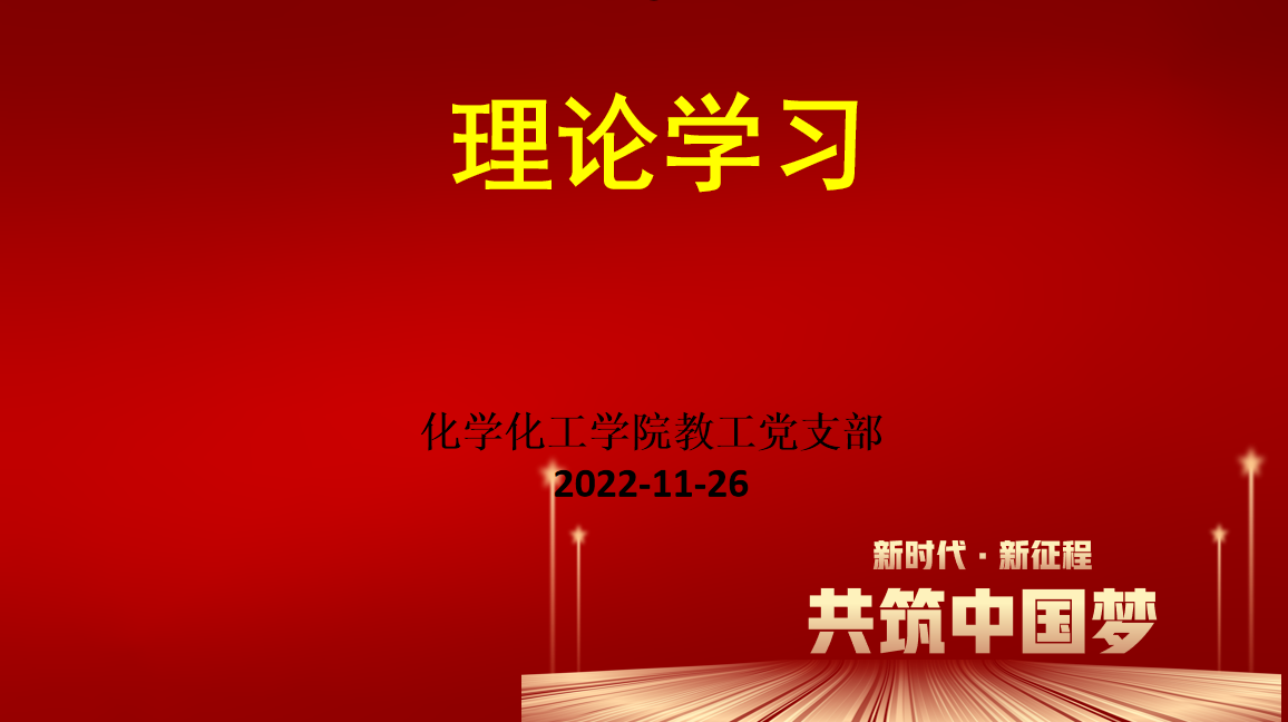 11月26日晚,化学化工学院教工党支部线上开展了“传达学校学习二十大精神实施方案,开展二十大精神理论学习”的党员大会,支部书记鲁芳主持会议,支部22位党员参加了会议。