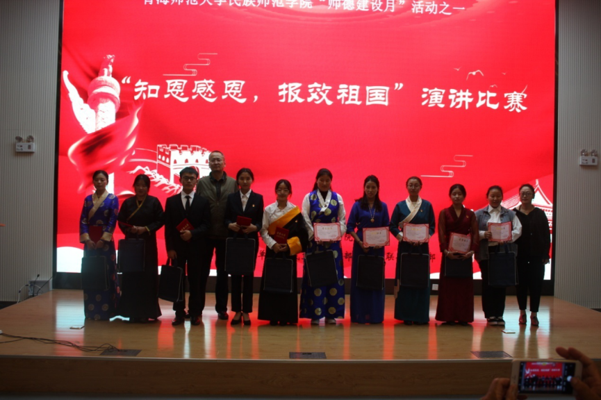 根据学院党委关于“德育建设月”为载体深入开展“明师德、守纪律、讲规矩”专项教育活动工作安排,为了让学生树立正确的社会主义价值观,激发广大青年学生对祖国、对党、对学校、对父母的感恩之情,做一名知恩图报、文明修养的现代大学生。9月23日下午,民族师范学院藏文系党支部、英汉联合党支部在科技报告厅举办“知恩感恩,报效祖国”演讲比赛活动。两个党支部16名教师党员,学院各系18、19级全体学生共231人参加了活动。