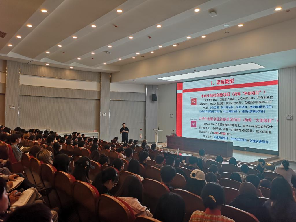 会上,王甲泰老师首先结合人才培养目标和方案要求阐释了创新创业项目的重要意义,强调了创新创业项目对个人综合测评、求学深造、就业的重大影响,鼓励同学们立足文本、着眼前沿,积极实践,在项目开展中展现专业素养、综合素质与学术规范。随后,王老师根据自己多年指导创新创业项目的经验,从“创新创业项目解读、申报流程、项目书撰写”三个角度做了详细的培训。最后,王老师就同学们对创新创业项目相关事宜存在的问题进行了现场答疑与解惑。