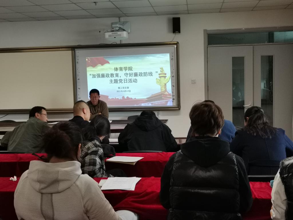 为进一步加强支部党风廉政建设工作,提高支部党员廉洁自律意识,3月17日下午,体育学院教工党支部组织开展了“加强廉政教育,守好廉政防线”主题党日活动。活动由支部书记周永超主持,全体党员参加了会议。