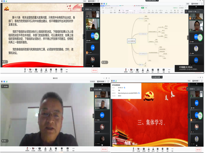 会上,党员们面对线上党旗举起右拳庄严宣誓,重温入党誓词,接受党性洗礼;集体学习了《党章》部分内容,学习宣读了《中共中央关于授予周永开、张桂梅同志和追授于海俊、李夏、卢永根、张小娟、加恩来提·麻合苏提同志“全国优秀共产党员”称号的决定》,肖玉芝要求全体党员以周永开、张桂梅等七位同志为榜样,树立正确的价值标杆,为开启全面建设社会主义现代化国家新征程勇立新功;毕业生党员汇报了毕业论文写作情况,提出了目前存在的问题和困难。