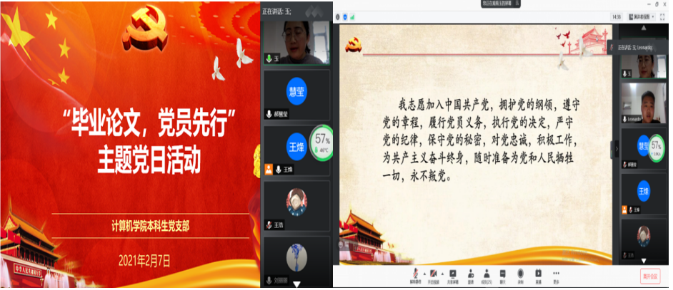 2月7日,计算机学院本科生党支部通过腾讯会议平台,举行线上“毕业论文、党员先行”的主题党日活动。副院长黄鹤鸣线上指导。会议由支部书记肖玉芝主持,17级毕业生全体党员参加。