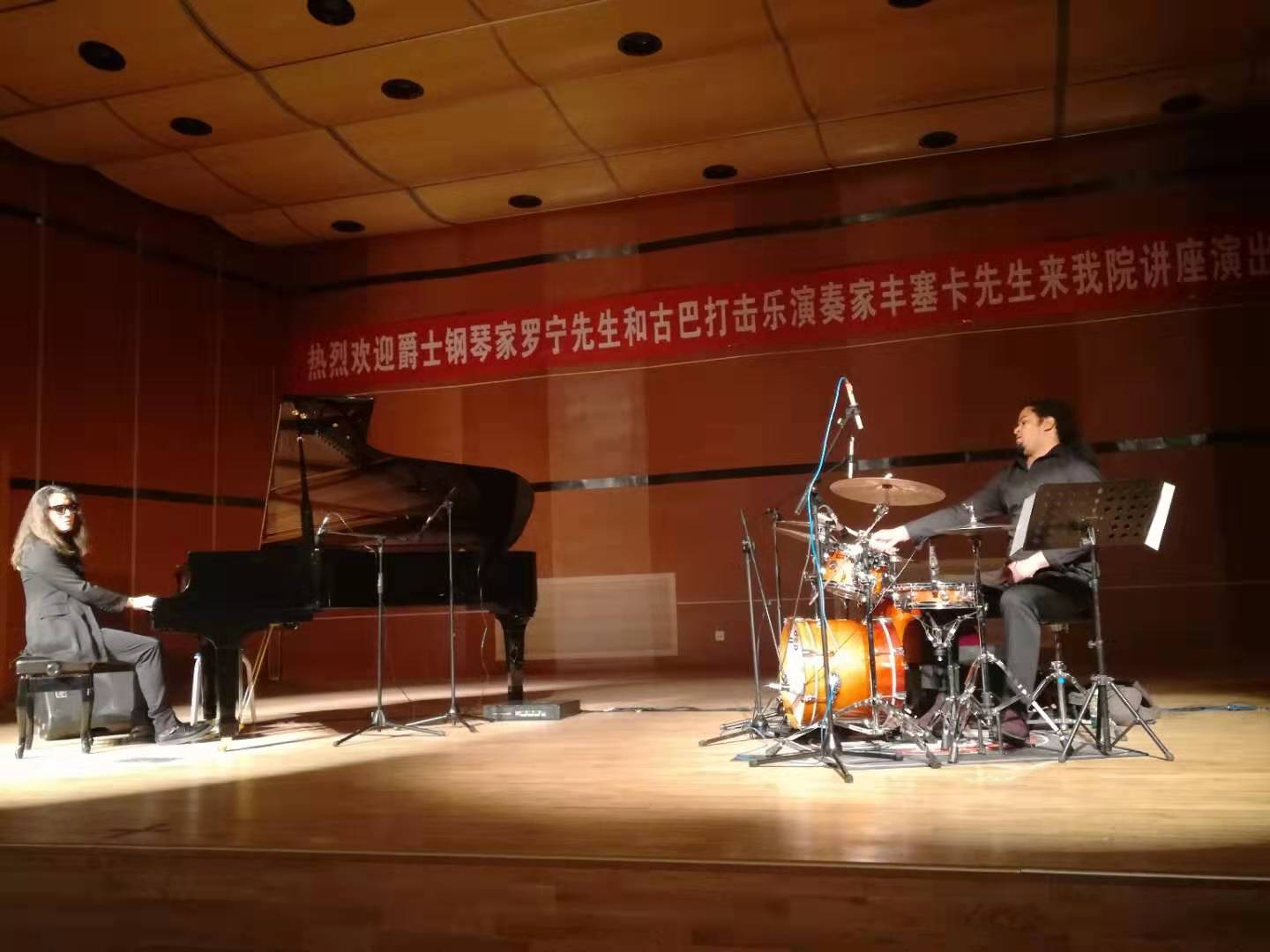 11月20日下午,音乐学院邀请著名爵士钢琴演奏家罗宁和古巴打击乐演奏家丰塞卡开展学术讲座和音乐会,音乐学院全体师生及青海省爵士音乐爱好者参加了本次讲座和演出。