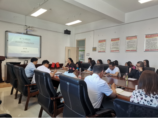 7月19日上午,北京师范大学外国语言文学学院院长、博士生导师苗兴伟教授在东2楼408学院会议室为外国语学院全体教师做了以“基于认证理念的英语师范人才培训体系建设”为主题的专题讲座。