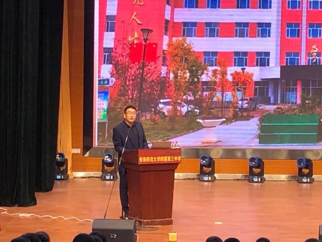 3月30日,附属第三实验中学邀请青海省昆仑领航名师、青海省教学研究室兼职教研员、青海省高中语文名师工作室成员、大通县高中语文学科组成员、大通县第三中学高中语文教师殷满成老师为附属第三实验中学高二高三师生做了题为“光辉的历史”党史教育专题讲座。
