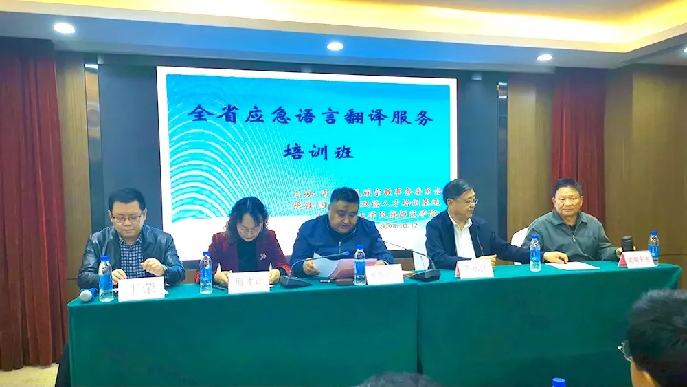 10月12日上午,由青海省民族宗教事务委员会主办、bat365在线平台登录国家民委双语人才培训基地承办的青海省应急语言翻译服务培训班在西宁开班。青海省民宗委党组成员、副主任哈斯巴图,民族语文工作中心主任梅才让,民族师范学院院长陈永良等领导以及来自全省从事民族语文翻译工作的65名学员一起参加了开班典礼。典礼由民族师范学院党委副书记王荣主持。