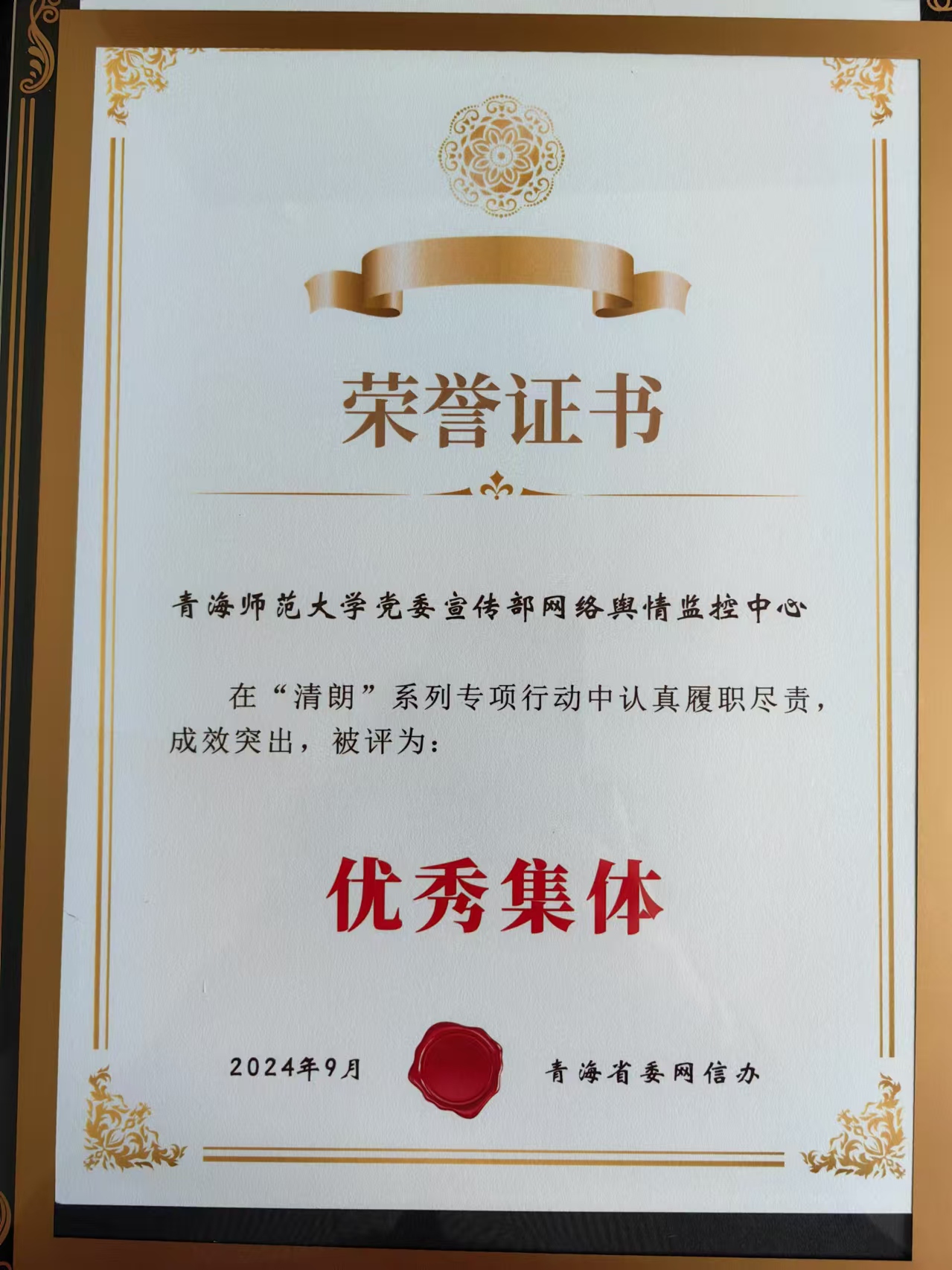 会议表彰了省委办公厅信息处、青海省互联网新闻中心、贵德县融媒体中心等27家“清朗”系列专项行动成效突出的优秀集体单位,“青海石榴籽家园”“青海教育”“青海普法”等16个优秀网络账号以及谷路路、齐新章、金华山等12名优秀自媒体个人。
