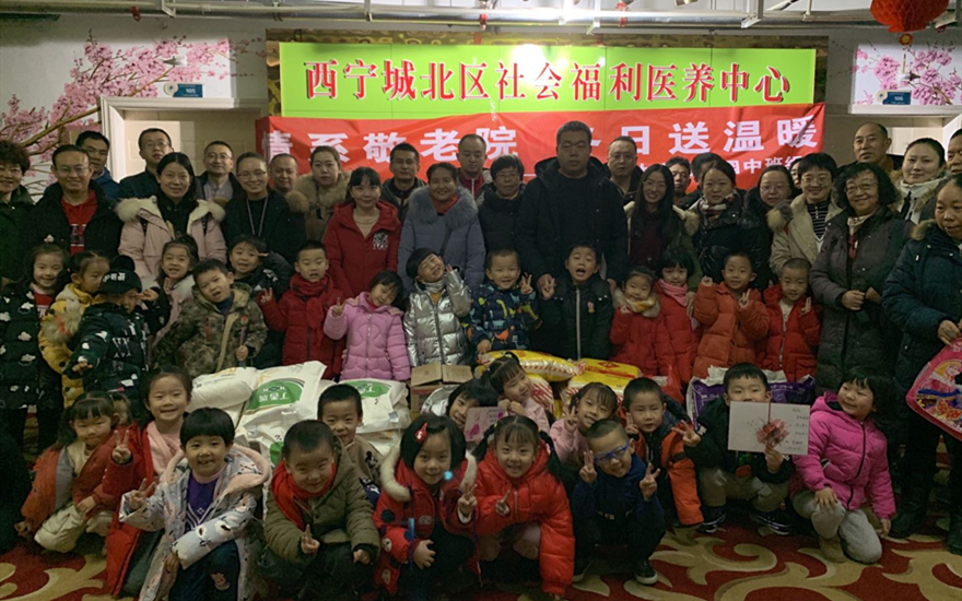 中班组孩子和家长们一起到青海省星光敬老院,为敬老院的爷爷奶奶们装扮环境,营造新年气氛,表演了精心排练的节目,为老人们赠送米、面、洗涤用品等新年礼物,并做了一些帮老人按摩、梳头、捶腿等力所能及的小事,用爱心和耐心传递着对老人的关爱。通过活动,孩子们传承了尊老爱幼的中华民族传统美德,相信这份敬老之心会在孩子心底生根,并随着孩子们的成长而延续。