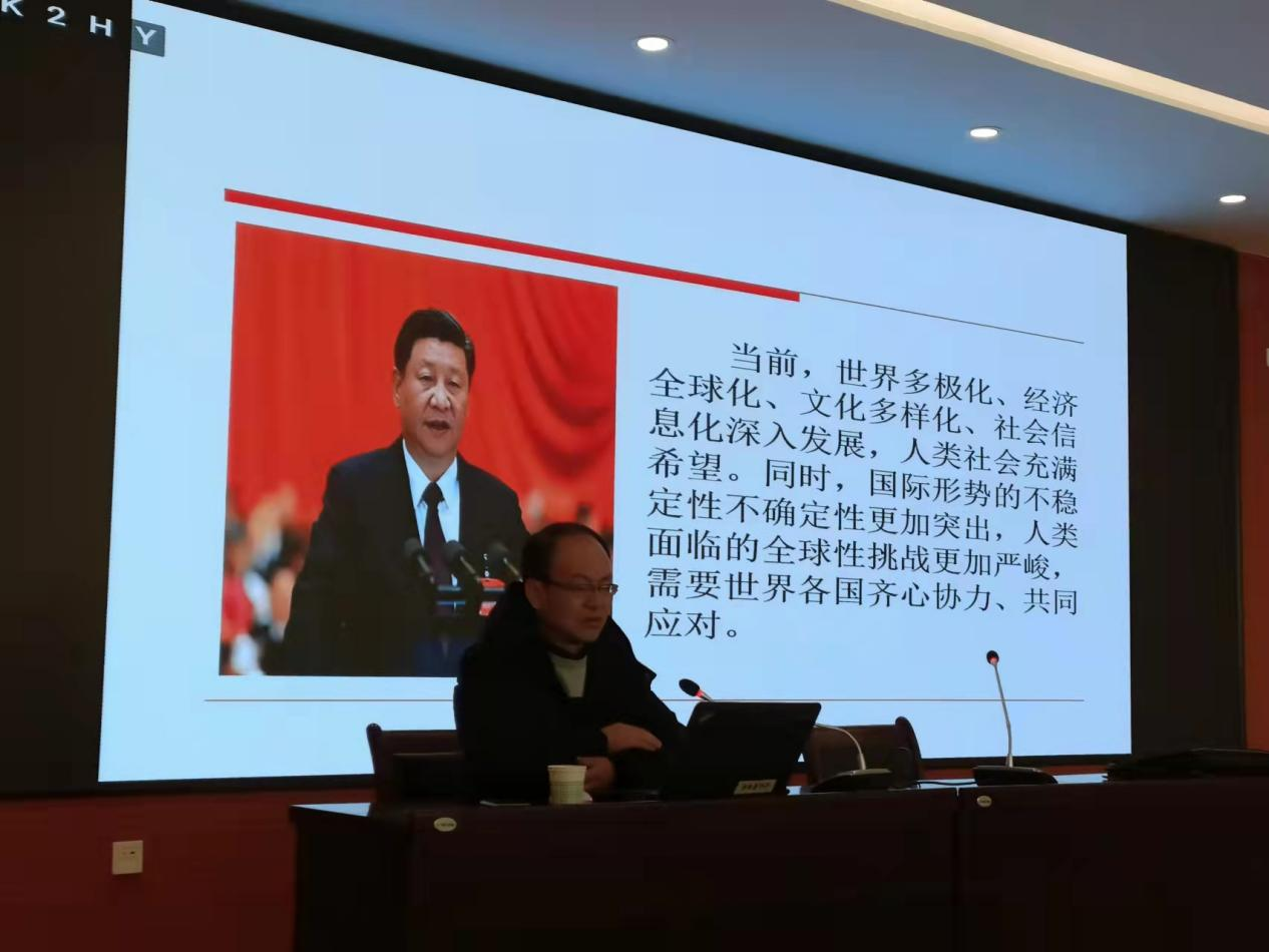 2月26日上午,附属第三实验中学党总支邀请马克思主义学院副教授,博士,硕士研究生导师,bat365在线平台登录习近平新时代中国特色社会主义思想研究中心成员马存孝教授做了题为《当前国际国内形势和国家安全教育》专题讲座。他从国际秩序的建立与发展、当前国际形势变化的几个特点、当前国内发展的形式、坚持总体国家安全观,加强国家安全教育等几个方面进行讲授。