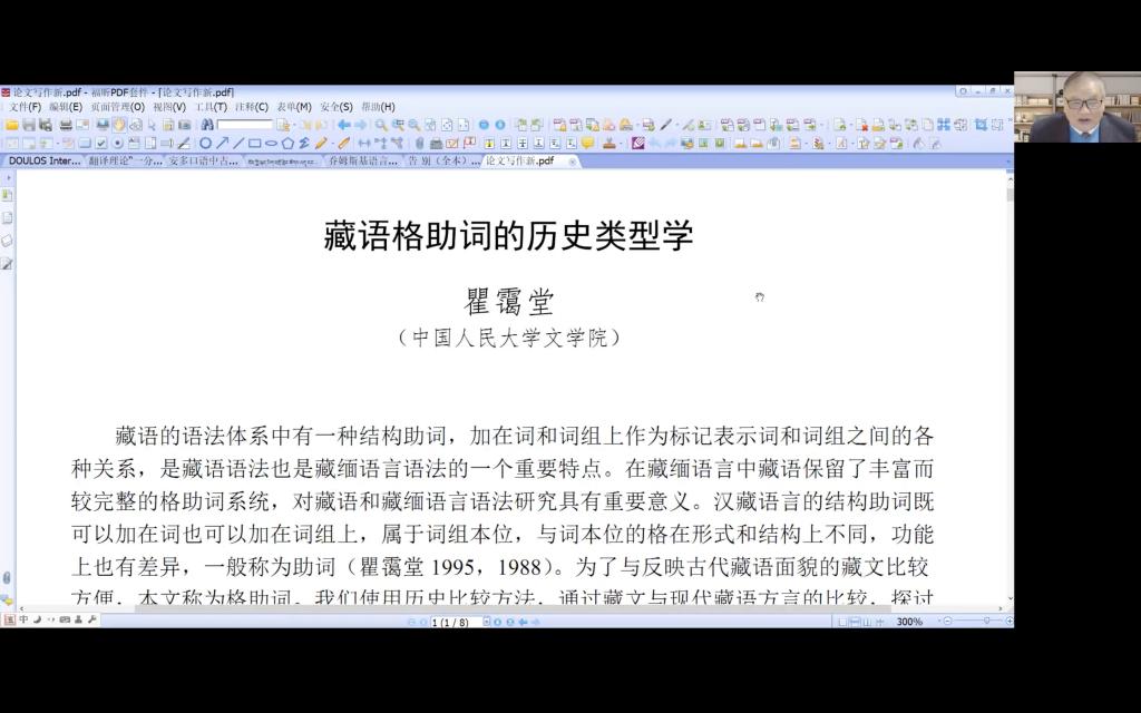 12月3日,高科院“铸牢中华民族共同体意识研究”团队邀请中国人民大学教授、我国著名语言学家瞿霭堂为师生作题为《藏语格助词的历史类型学》的线上学术讲座。此次讲座由高科院主办,高科院“铸牢中华民族共同体意识研究”团队及民族师范学院藏语言文学系共同承办。来自北京大学、中国人民大学、中山大学、中国社会科学院、中国藏学研究中心、西藏大学、西北民族大学、青海民族大学、甘肃民族师范学院、bat365在线平台登录及高科院等科研机构、高等院校近250余人参加讲座。