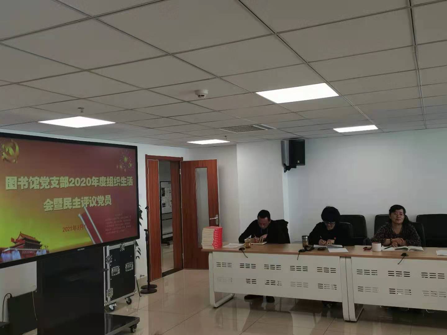 3月17日下午,图书馆党支部召开2020年度组织生活会暨民主评议党员大会,全体党员参加了会议,支部书记田援青主持会议。