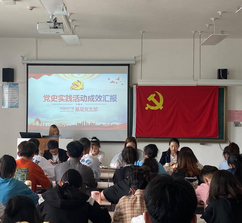 会上,全体党员重温了入党誓词。接着由党史学习教育工作小组负责人黄璐婕、郭梦艳、安玉洁、张亚同志结合党史学习教育工作,围绕党的十八大以来党和国家事业历史性变革和成就进行交流发言。张亚同志谈到,习近平总书记在党的十九大报告中指出:“强军兴军开创新局面。”,支部宣讲团以军事为主题在班级进行宣讲时,同学们的反映强烈,激发了大家的强国情怀。郭梦艳同志谈到,通过学习,真正理解悟透中国共产党为什么能、马克思主义为什么行、中国特色社会主义为什么好等重大问题,也加深了我个人切实发挥示范带头作用的信念。其他同志纷纷表示要“潜心笃志”,继续深入学党史,在党史学习中明确前进方向,坚定理想信念。
