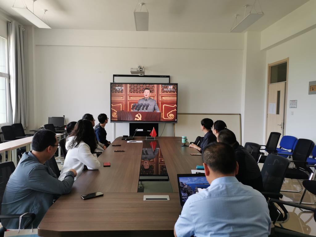 活动伊始,礼炮隆隆、红旗猎猎,国旗护卫队精神饱满、步伐铿锵,观看直播的全体党员与活动现场的同志们一道肃立,齐唱国歌,向国旗行礼。随后分别聆听了各民主党派、工商联和无党派人士的联合贺词及共青团员和少先队员献词、习近平总书记重要讲话。其中,总书记讲到“中国人民是崇尚正义、不畏强暴的人民,中华民族是具有强烈民族自豪感和自信心的民族。中国人民从来没有欺负、压迫、奴役过其他国家人民,过去没有,现在没有,将来也不会有。同时,中国人民也绝不允许任何外来势力欺负、压迫、奴役我们,谁妄想这样干,必将在14亿多中国人民用血肉筑成的钢铁长城面前碰得头破血流!”,此处对大家的感染巨大,掌声不息。我们深知,当前国家所面临的风险和挑战之巨大,作为高校教师,深知必须坚持“立德树人”的根本任务,必须为培养合格的社会主义事业接班人不懈奋斗。