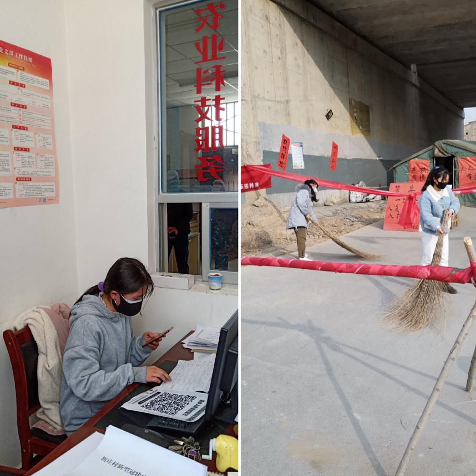 19级英语师范B班蒲敏在“战疫”刚打响时,不畏艰难、勇敢逆行,毫不犹豫的报名参加了家乡的防疫志愿者工作。负责协助调查村庄出入口的人员排查、为业主发放通行证、采集信息和出行情况等相关工作。同时,为确保防疫工作顺利展开,在村庄进行打扫卫生和全方位的消毒。她说:“在工作过程中,大家的态度都很友好,都很积极的参加配合完成工作。这一切都归功于人们思想的进步,祖国的进步,时代的进步。在党的领导下,全国人民万众一心,众志成城参与防疫,作为一名大学生贡献自己微薄的力量与责任是理所应当的。”她用实际行动践行初心使命,为疫情防控工作贡献青春和力量。